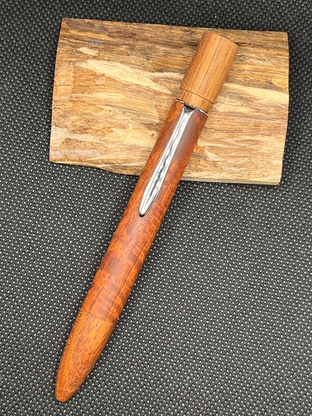 Ramus-G2 (ラームス) 樹 種: 軸部 : ホンジュラスローズ 口金 : ホンジュラスローズ 仕 上: オイル仕上げ 全 長: 約 125mm 最大径: 約 12.5mm 重 さ: 約 29g 対応芯: G2規格リフィル ※初期インクとしてジェットストリーム0.5mmを搭載しています。 ツイスト式ボールペン(回転繰り出し式)です。 クリップ上部のパーツを回転させることで芯を繰り出します。 芯交換時は口金部分を反時計回りに回すことにより外すことが可能です。 天冠部分は引っ張って外すことが出来ますが、基本的に外すことは非推奨です。 外す際はメンテナンス時など最小限にしてください。 付属品として小分けした蜜蝋ワックス(約5g)が同梱します。 【注意点】 ・販売会毎にお一人様1本のみ購入可能です。複数購入された場合には購入順の一番早いものを残し、それ以外はキャンセルさせて頂きます。 ・本品は手作り品です。完璧を求められる方は購入をお控えください。